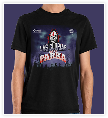 Participa del 19 al 22 de marzo de 2025 por uno de los 25 kits de las Glorias de La Parka que incluyen una playera conmemorativa, un sticker y un pin metálico.